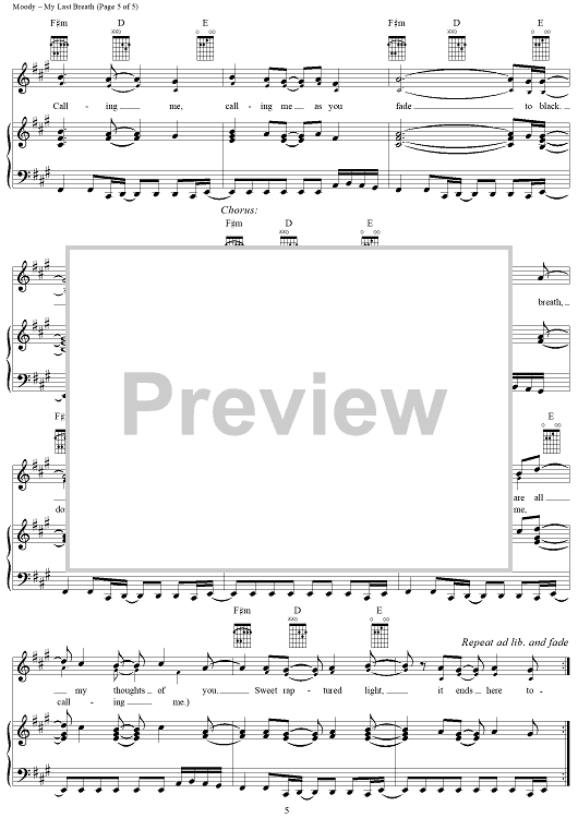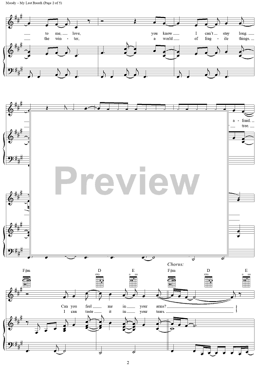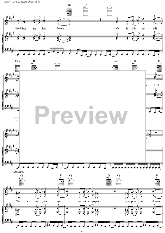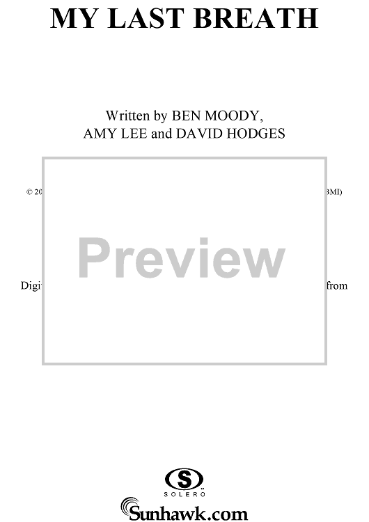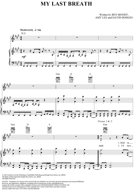 Digital Sheet Music for My Last Breath by Evanescence, Ben Moody, Amy Lee, David Hodges scored for Piano/Vocal/Chords; id:304559