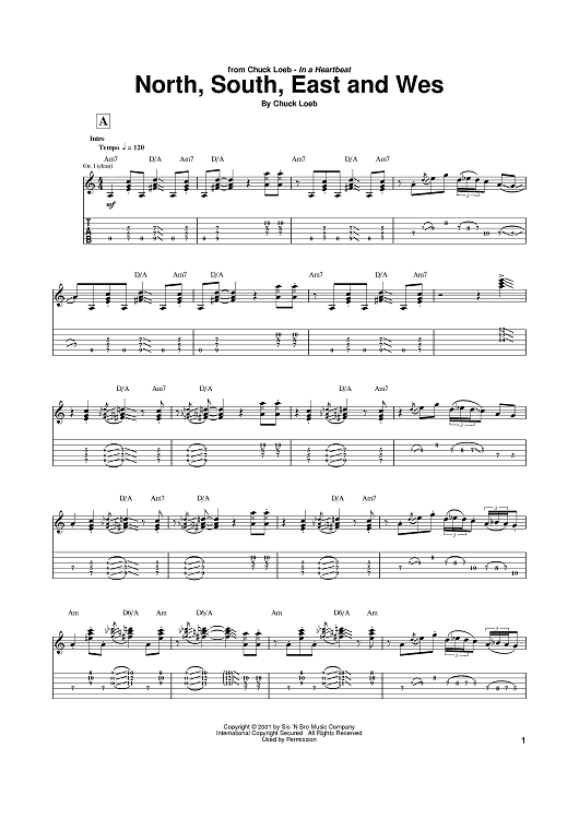 Digital Sheet Music for North, South, East And Wes by Chuck Loeb scored for Guitar Tab; id:383839