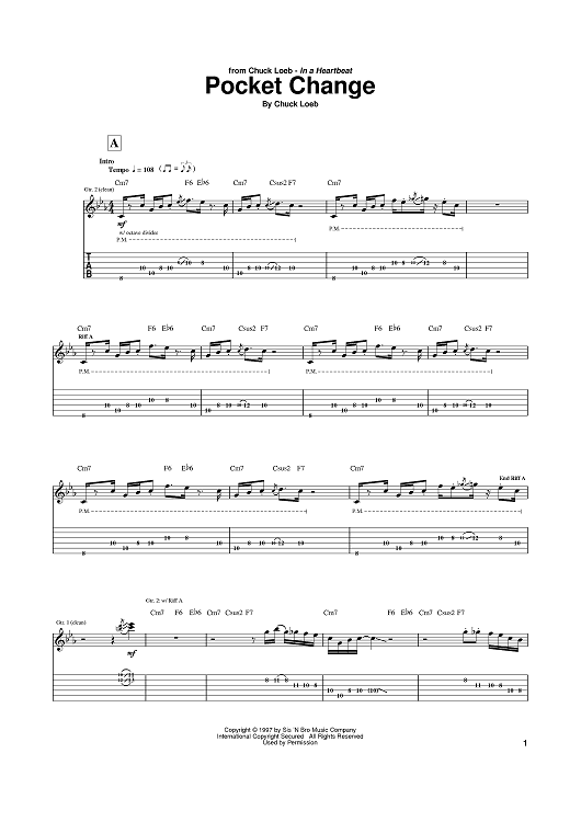 Digital Sheet Music for Pocket Change by Chuck Loeb scored for Guitar Tab; id:383840