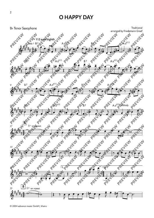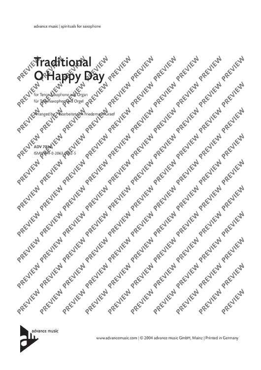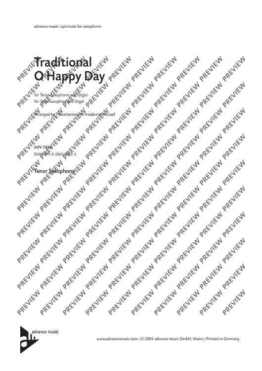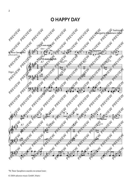 This collection of pieces for saxophone and organ or piano is designed for use in concert performances as well as for church services and other ceremonies. It contains the traditional American spirituals extended by composed introductions and endings, or interludes and written solos. The notated solos here are the results of more than ten years of personal experience with these tunes and chord changes, from a saxophonist to other saxophonists. The organ part may also be played on acoustic piano if the bass voice is played one octave lower in respective passages. These passages are marked. There is a transposed part for B flat and E flat saxophones. Due to the different register of the tenor and alto saxophone, a few notes of the alto saxophone parts have been changed for a more effective sound.