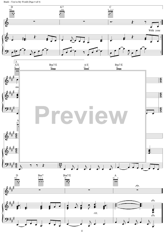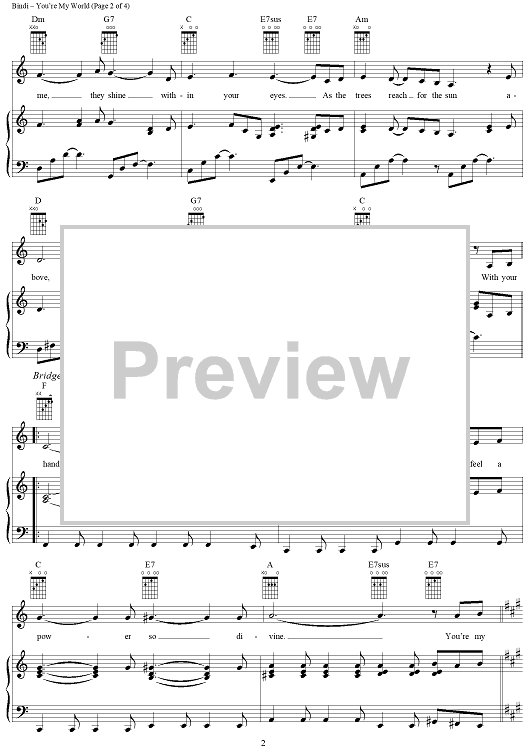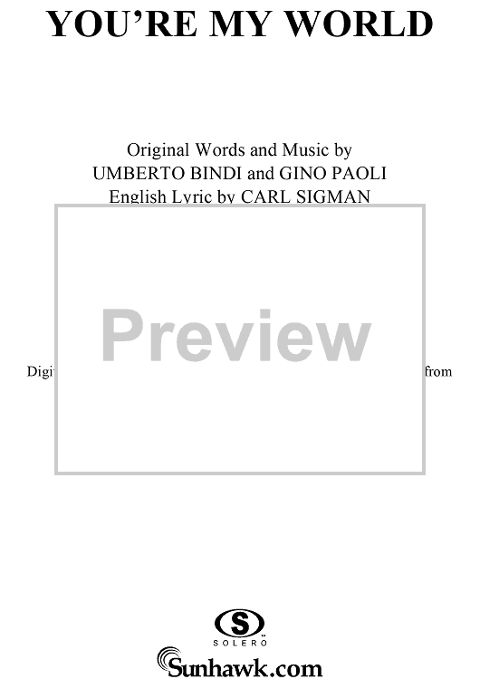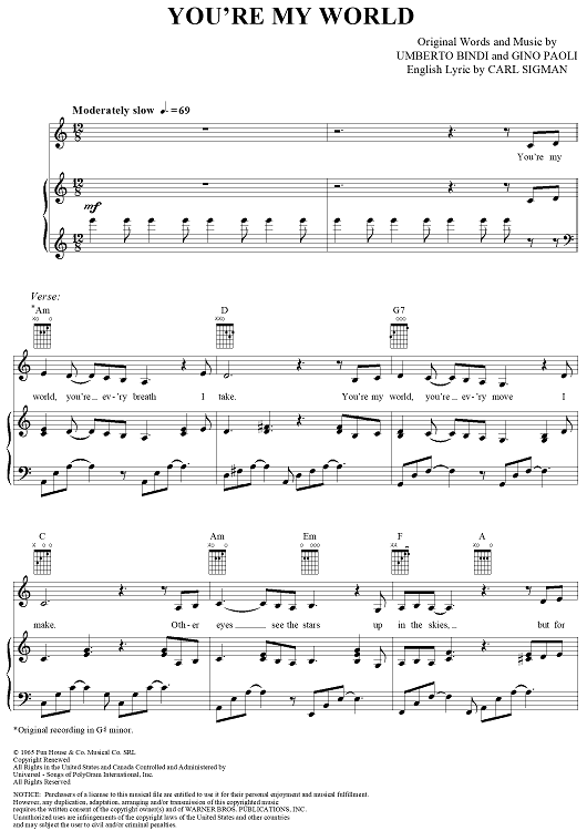 Digital Sheet Music for You're My World by Cilia Black, Umberto Bindi, Gino Paoli scored for Piano/Vocal/Chords; id:297230