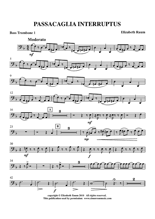 Digital Sheet Music for Passacaglia Interruptus - Bass Trombone 1 by Elizabeth Raum scored for Brass Ensemble; id:410109
