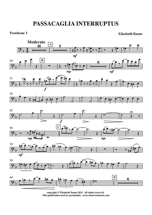 "Passacaglia Interruptus - Trombone 3" Sheet Music by Elizabeth Raum