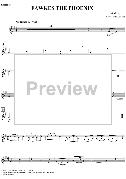Digital Sheet Music for Fawkes the Phoenix by John Williams scored for Clarinet/Piano; id:317330