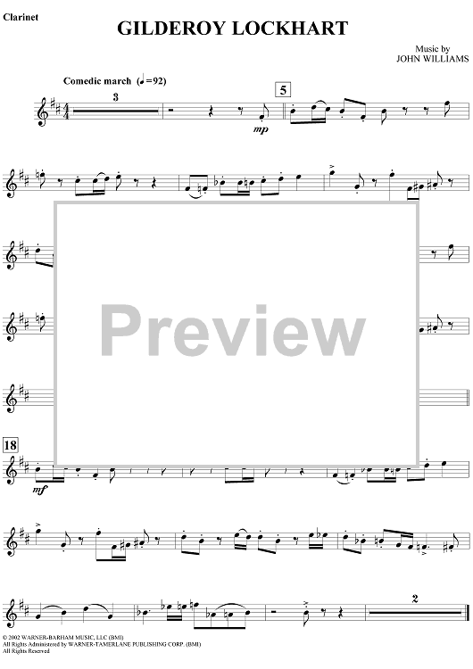 Digital Sheet Music for Gilderoy Lockhart by John Williams scored for Clarinet/Piano; id:317327