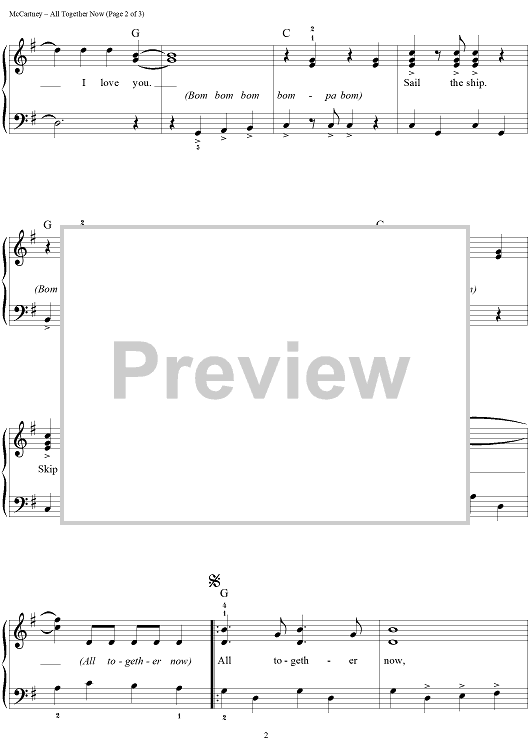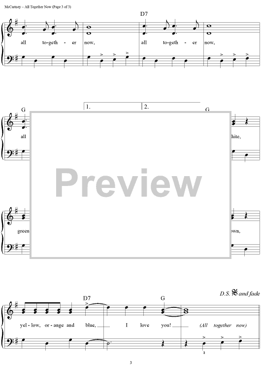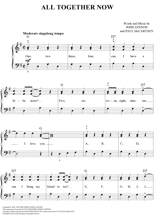 Digital Sheet Music for All Together Now by Paul McCartney, The Beatles, John Lennon scored for Easy Piano/Vocal/Chords; id:448101