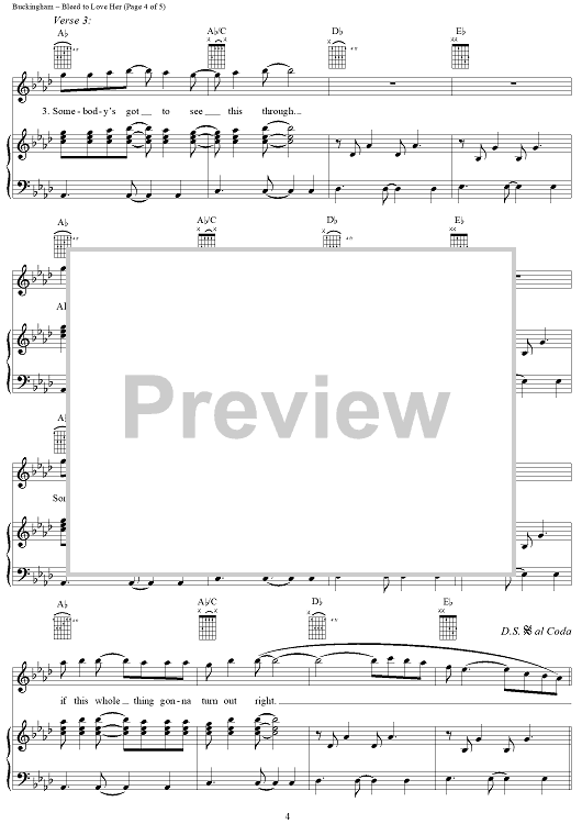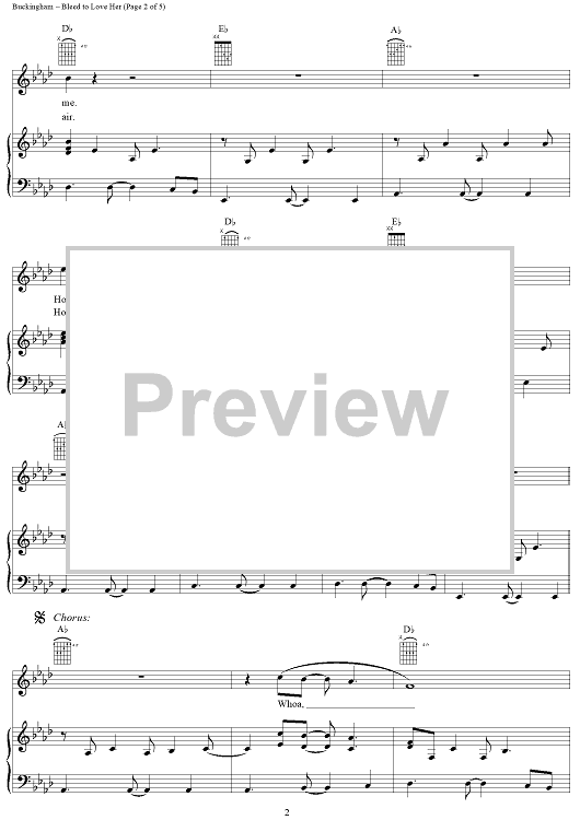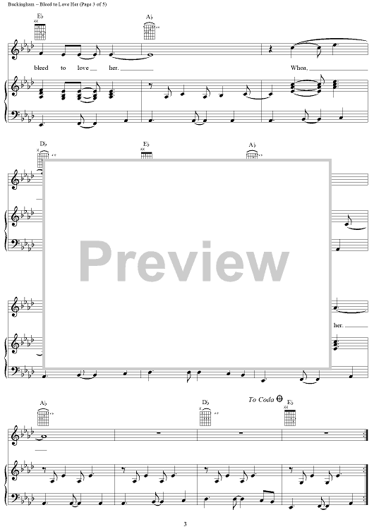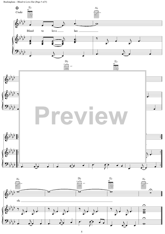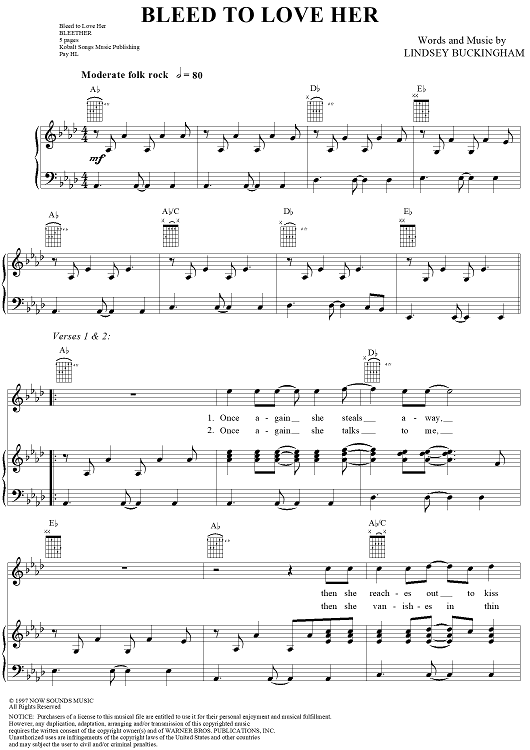 Digital Sheet Music for Bleed to Love Her by Lindsey Buckingham, Fleetwood Mac scored for Piano/Vocal/Chords; id:125744