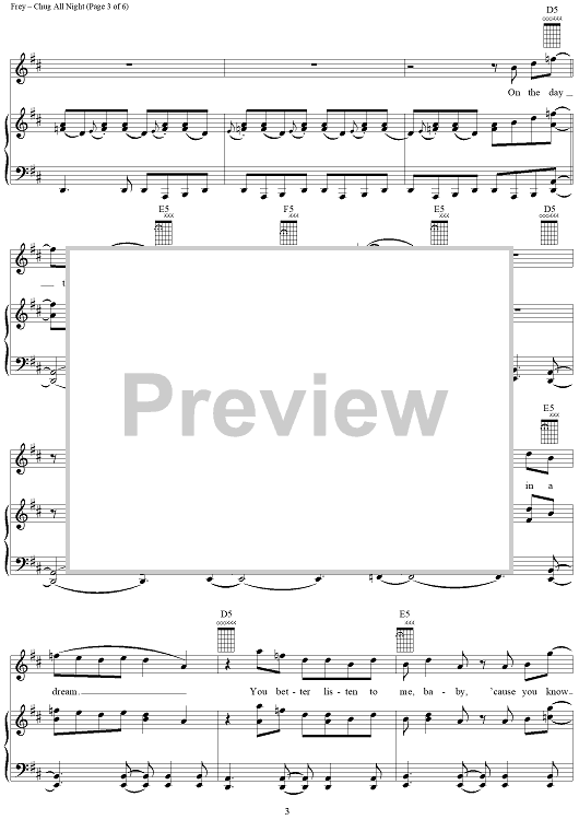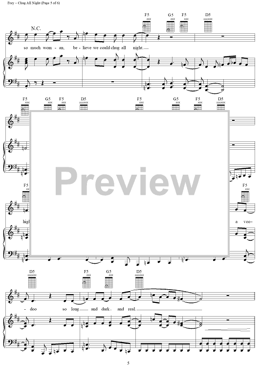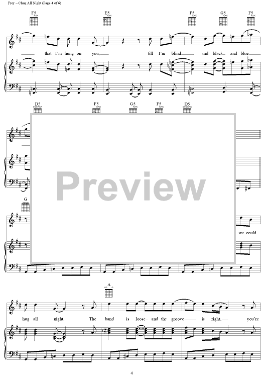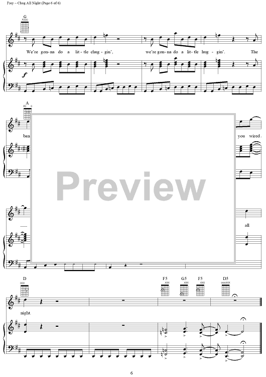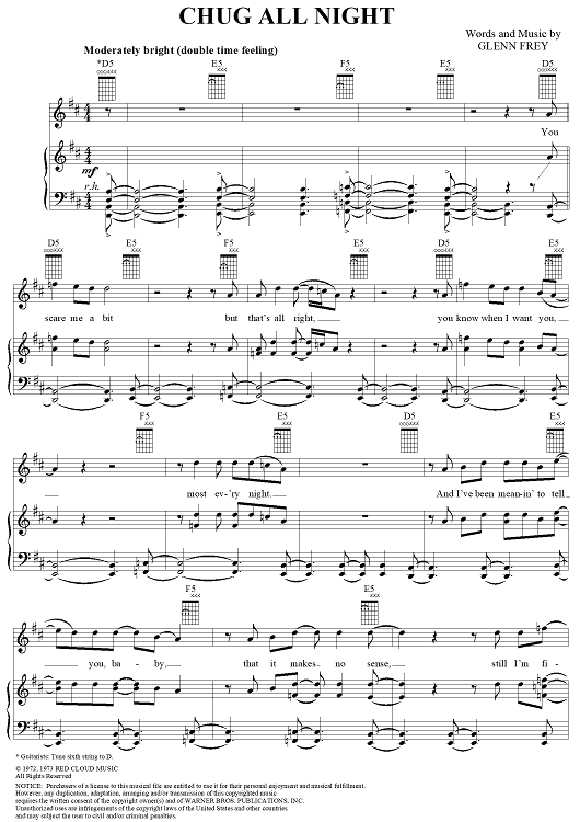 Digital Sheet Music for Chug All Night by Glenn Frey, Eagles scored for Piano/Vocal/Chords; id:113261