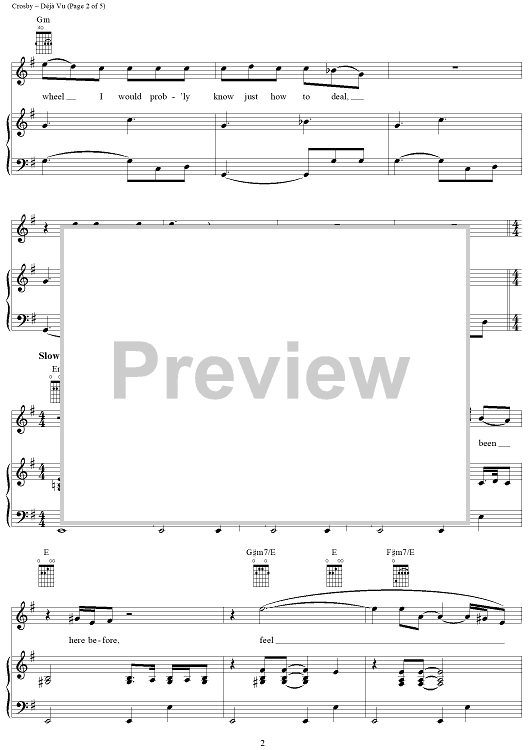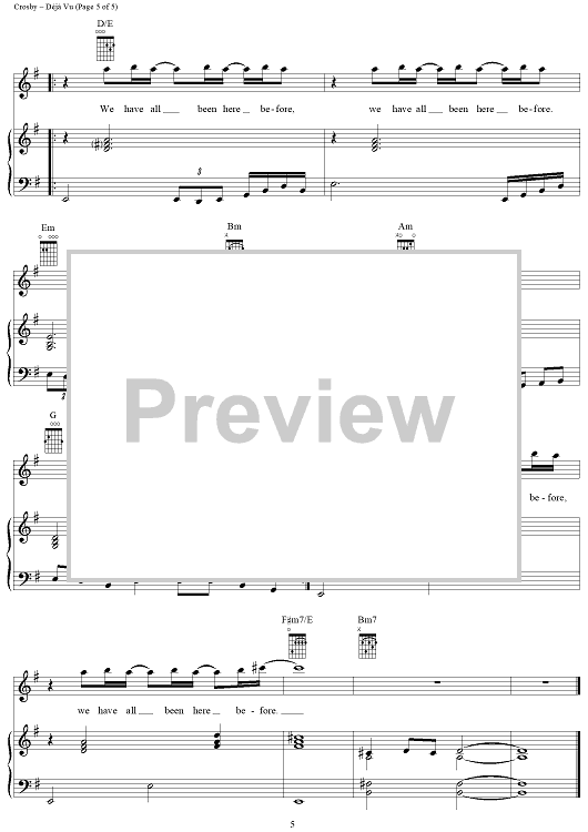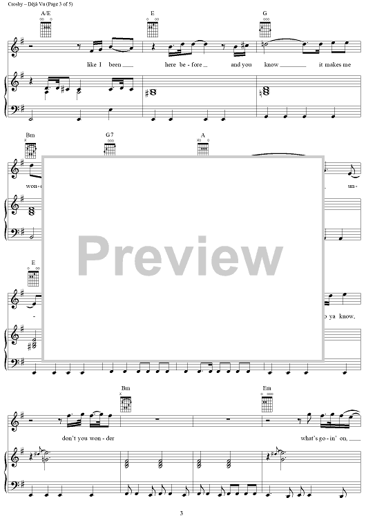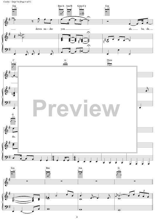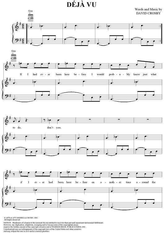 Digital Sheet Music for Déjà Vu by David Crosby, Crosby, Stills, Nash & Young scored for Piano/Vocal/Chords; id:233168