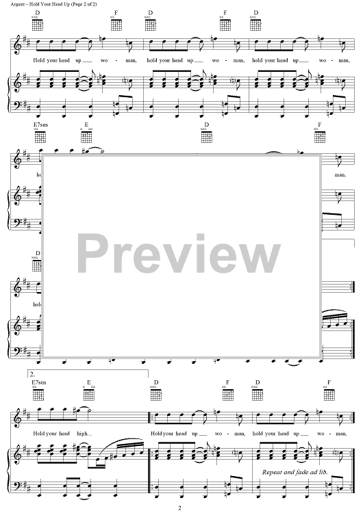 Digital Sheet Music for Hold Your Head Up by Rod Argent, Chris White scored for Piano/Vocal/Chords; id:120166