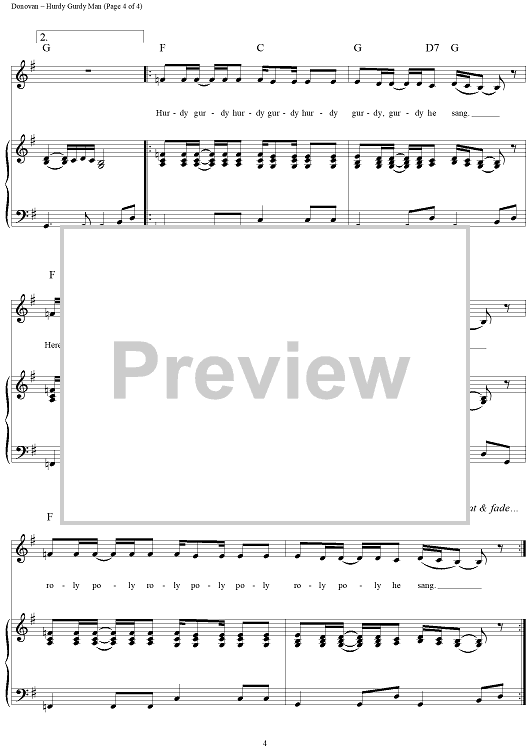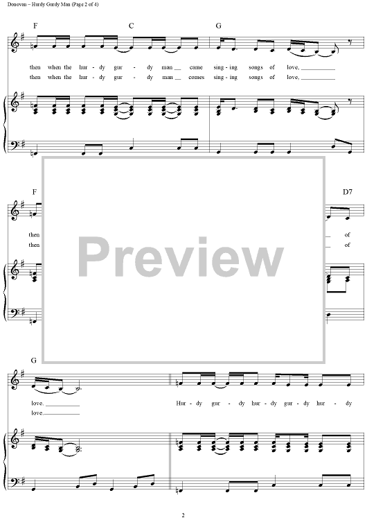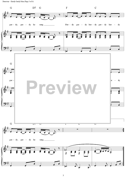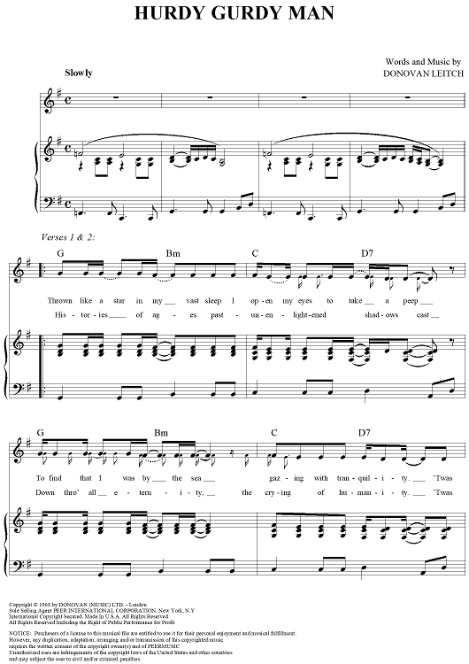 Digital Sheet Music for Hurdy Gurdy Man by Donovan Leitch, Donovan scored for Piano/Vocal/Chords; id:124231
