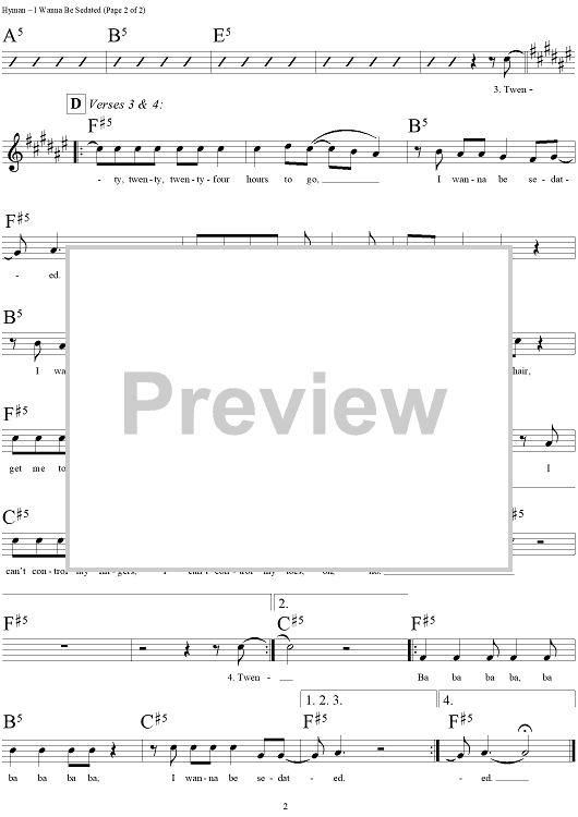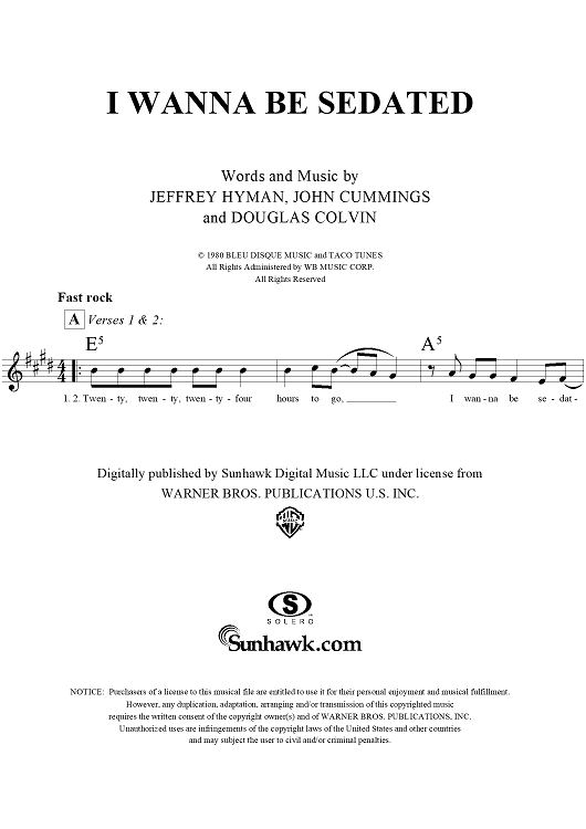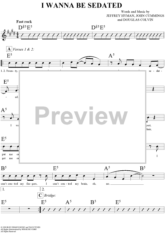 Digital Sheet Music for I Wanna Be Sedated by Douglas Colvin, Jeffrey Hyman, John Cummings scored for Lead Sheet; id:293962