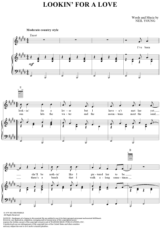 "Lookin' for a Love" Sheet Music by Neil Young