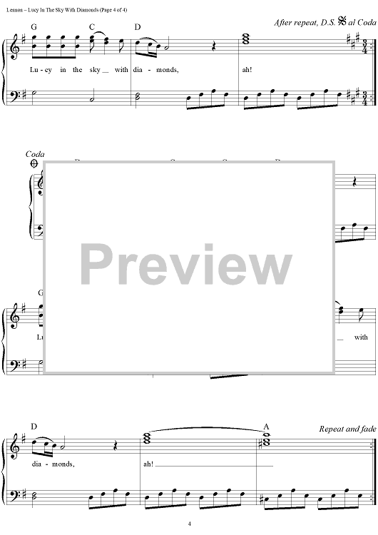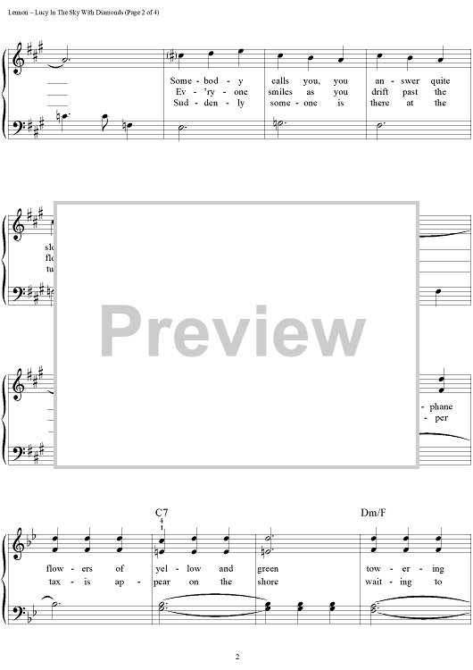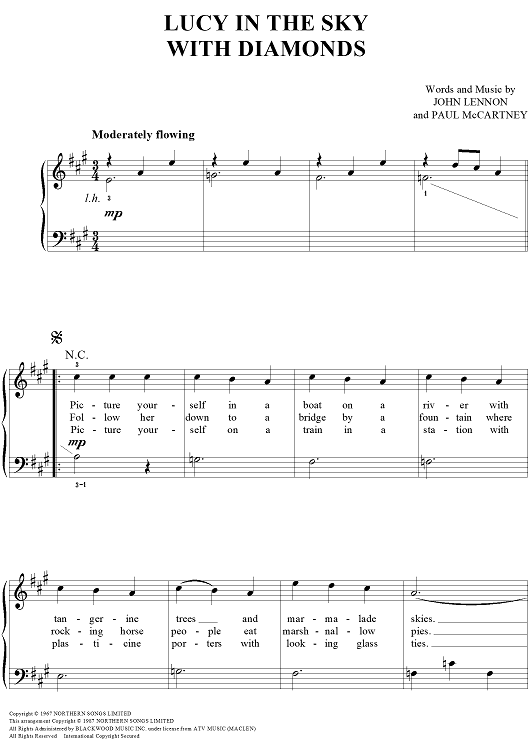 Digital Sheet Music for Lucy in the Sky with Diamonds by Paul McCartney, The Beatles, John Lennon scored for Easy Piano/Vocal/Chords; id:448676