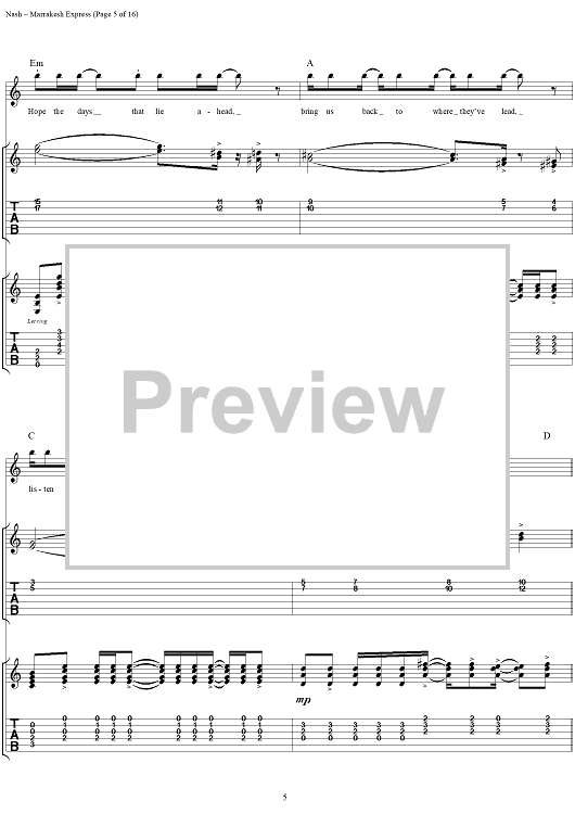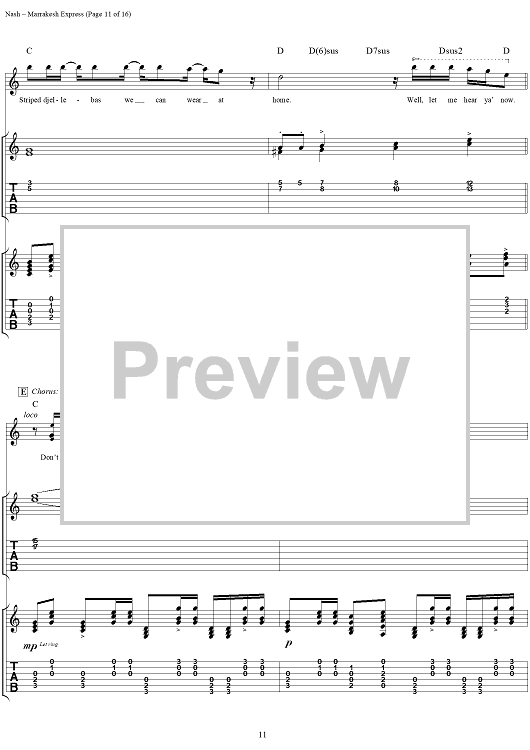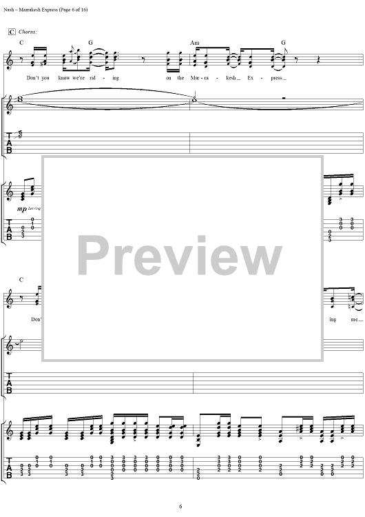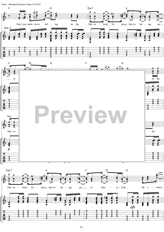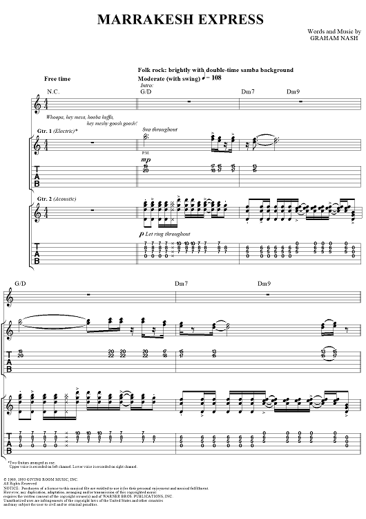 "Marrakesh Express" Sheet Music by Crosby, Stills & Nash