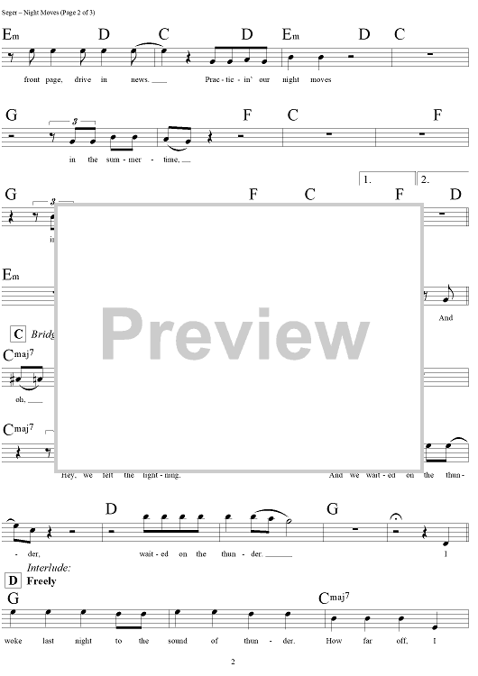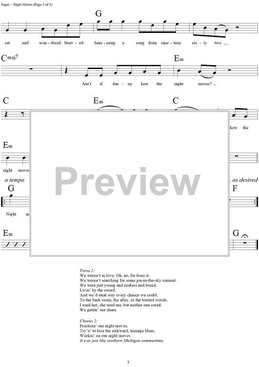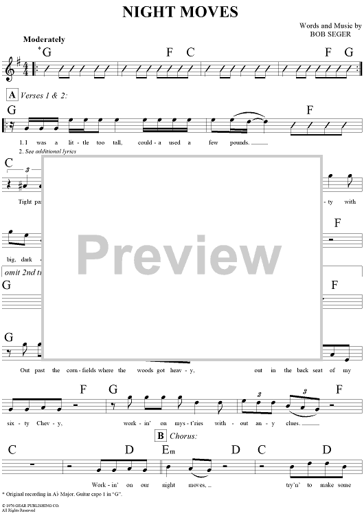 Digital Sheet Music for Night Moves by Bob Seger scored for Lead Sheet; id:294015