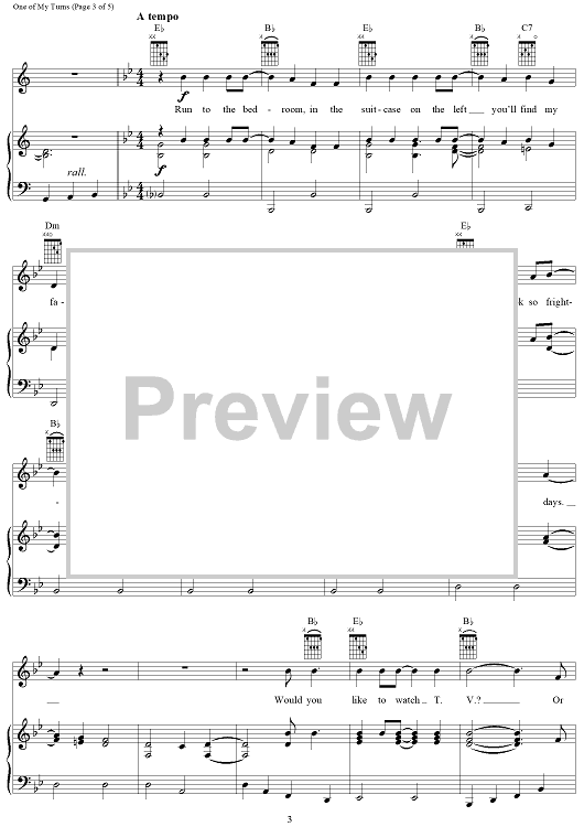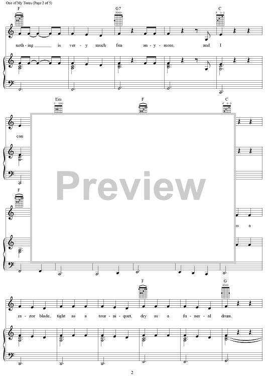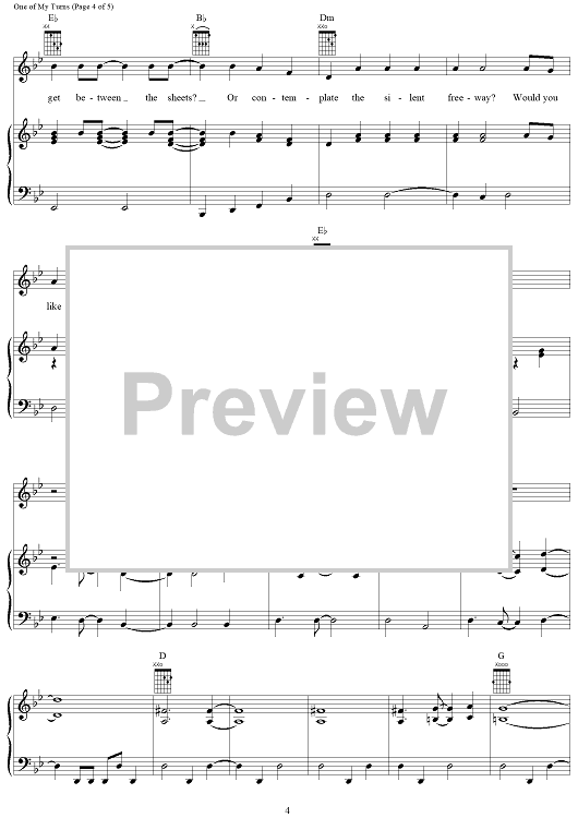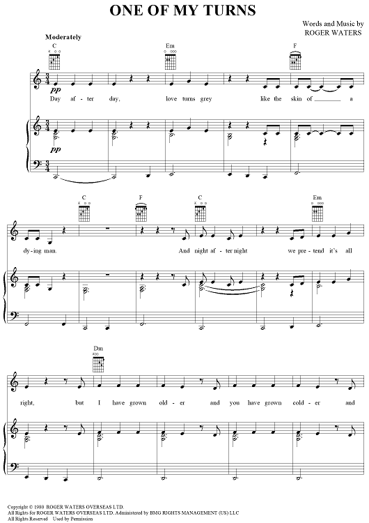Digital Sheet Music for One of My Turns by Pink Floyd, Roger Waters scored for Piano/Vocal/Chords; id:284292