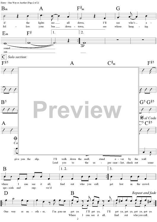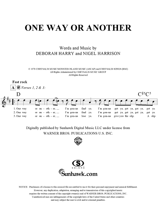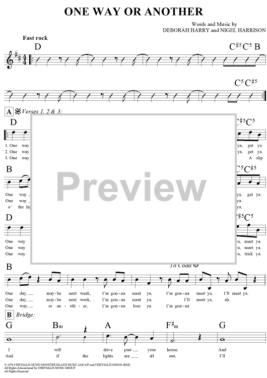 Digital Sheet Music for One Way or Another by Deborah Harry, Nigel Harrison scored for Lead Sheet; id:294022