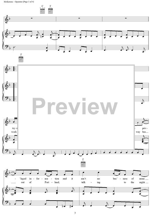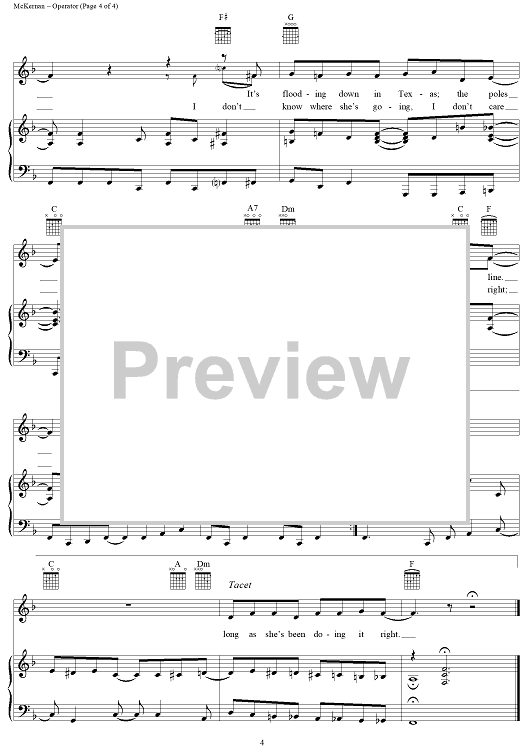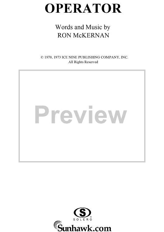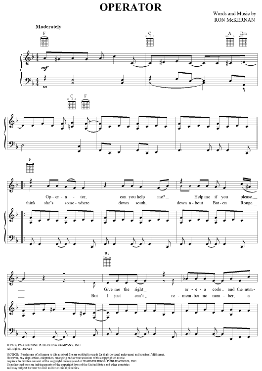 Digital Sheet Music for Operator by Ron McKernan, Grateful Dead scored for Piano/Vocal/Chords; id:251610