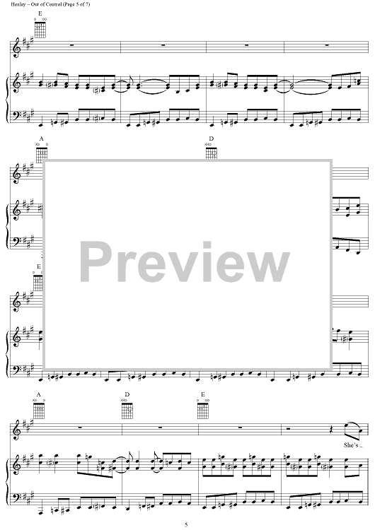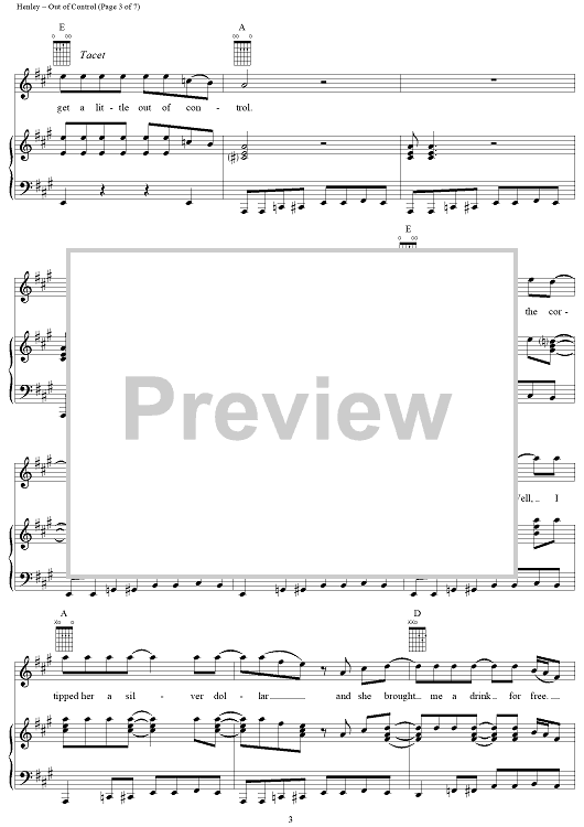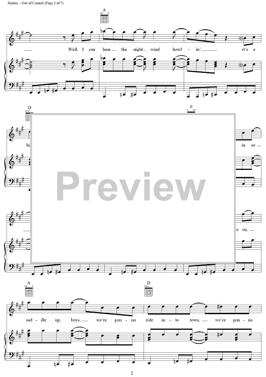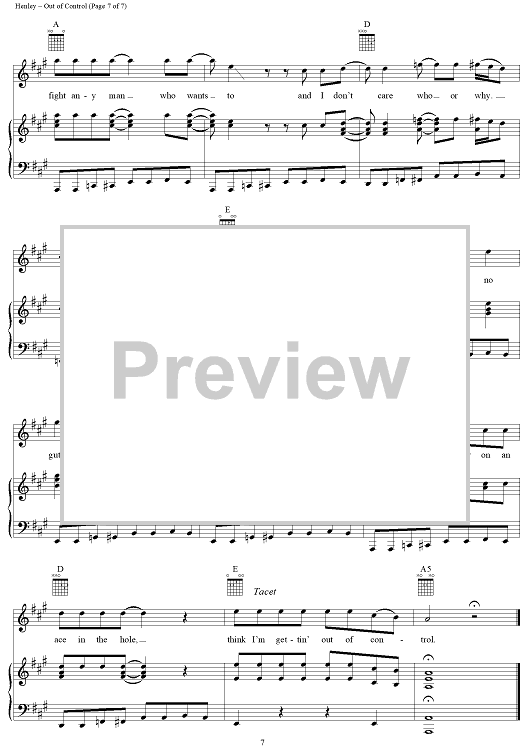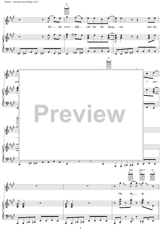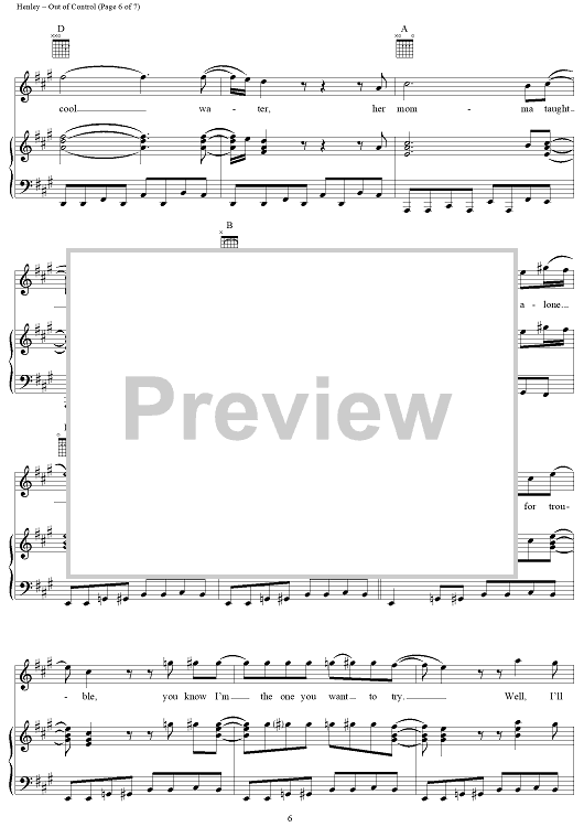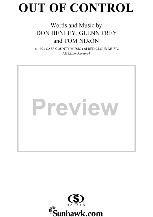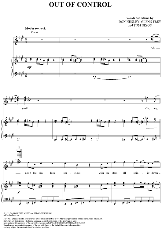 Digital Sheet Music for Out of Control by Don Henley, Tom Nixon, Glenn Frey, Eagles scored for Piano/Vocal/Chords; id:113342