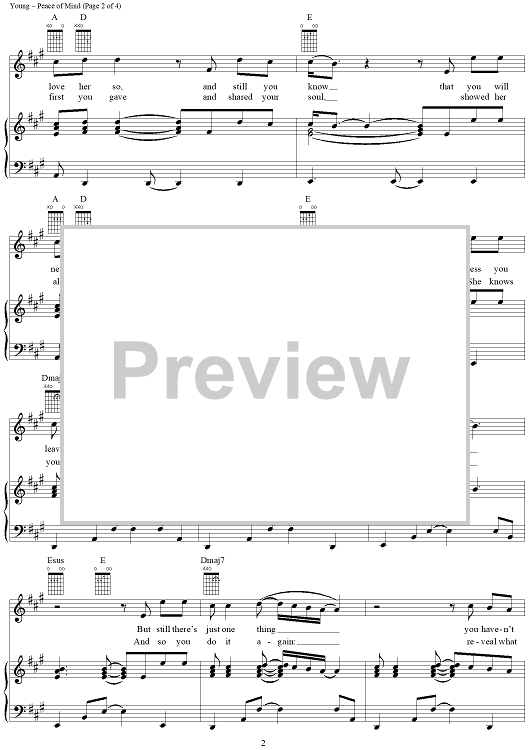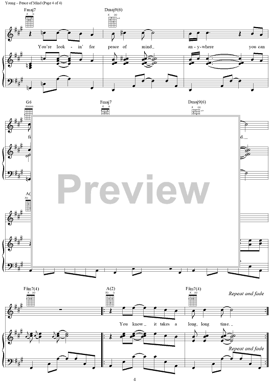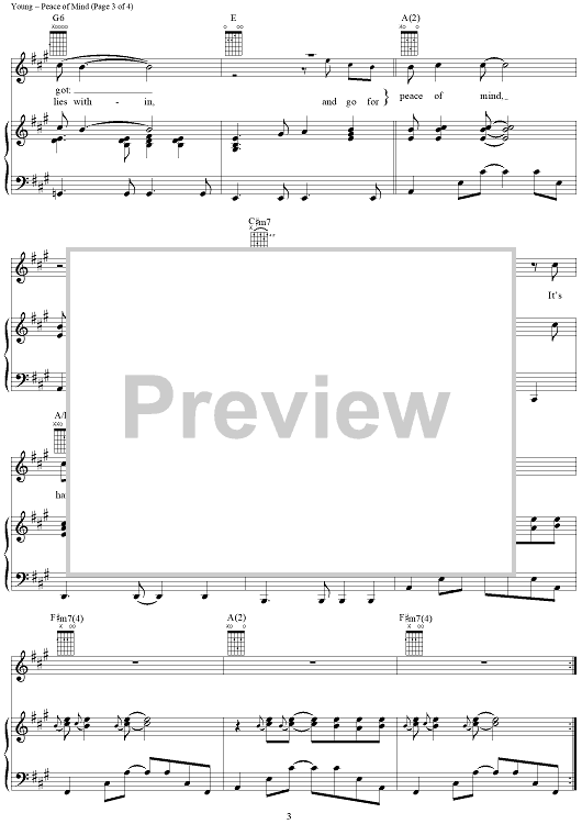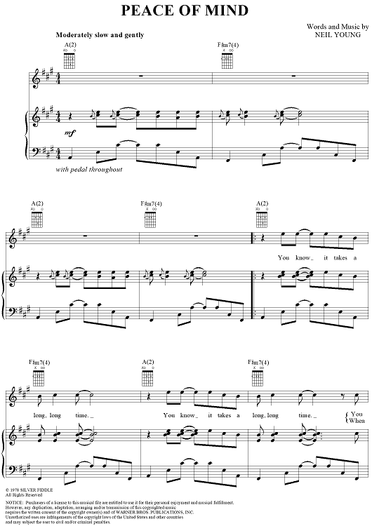 Digital Sheet Music for Peace of Mind by Neil Young scored for Piano/Vocal/Chords; id:139902