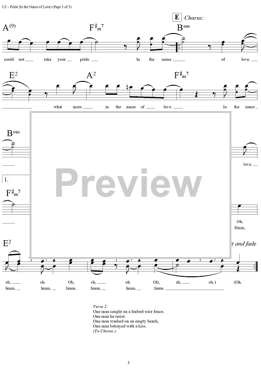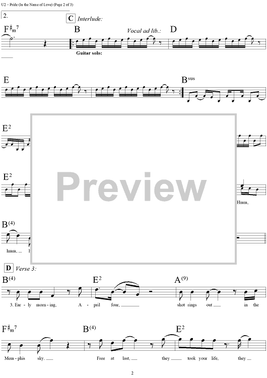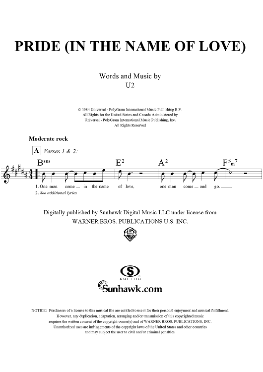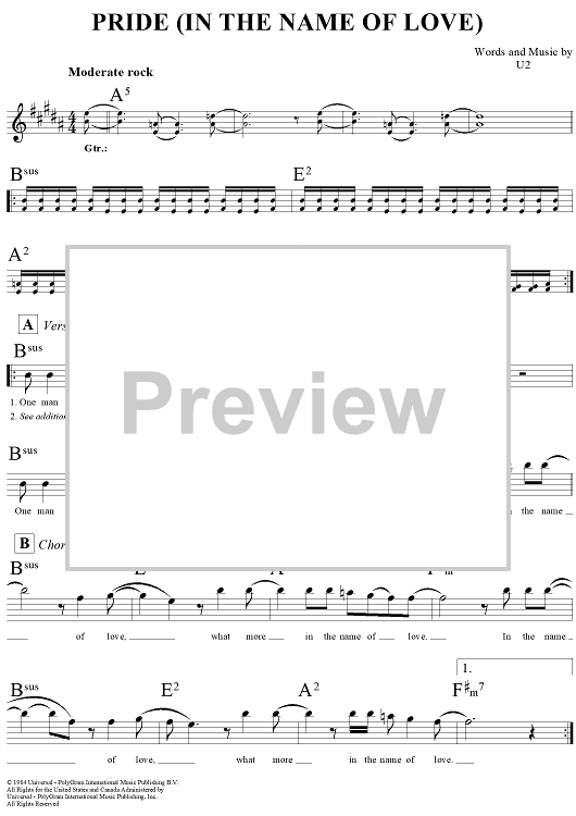 Digital Sheet Music for Pride (In the Name of Love) by U2 scored for Lead Sheet; id:294184