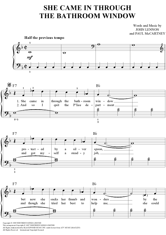 "She Came in Through the Bathroom Window" Sheet Music by The Beatles