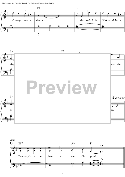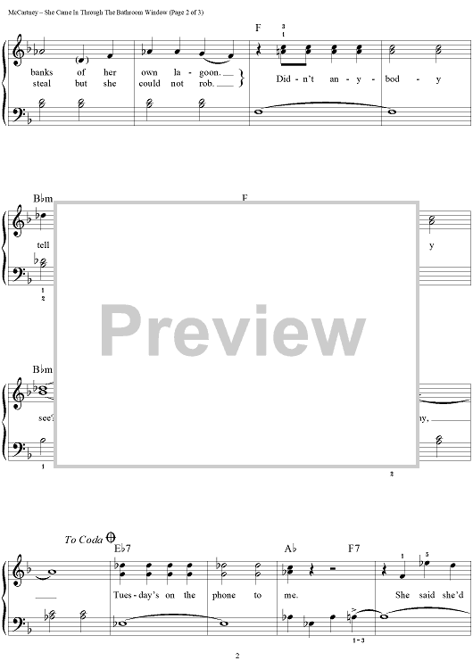 Digital Sheet Music for She Came in Through the Bathroom Window by Paul McCartney, The Beatles, John Lennon scored for Easy Piano/Vocal/Chords; id:448684