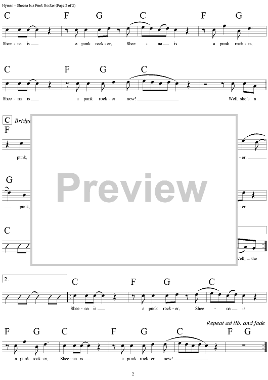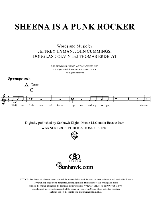 "Sheena Is a Punk Rocker" Sheet Music by Douglas Colvin