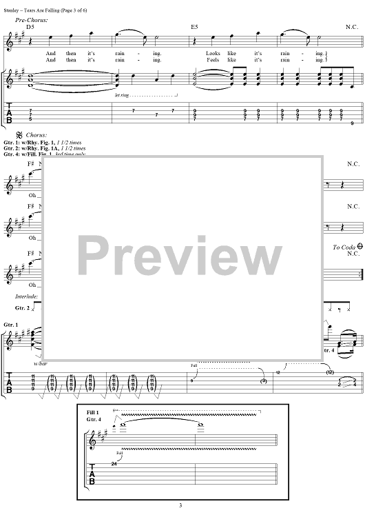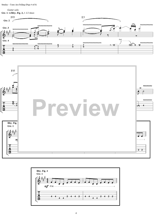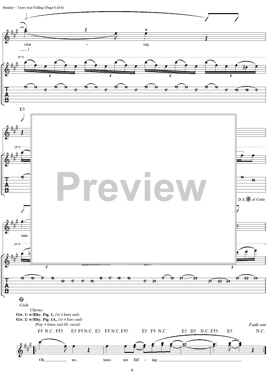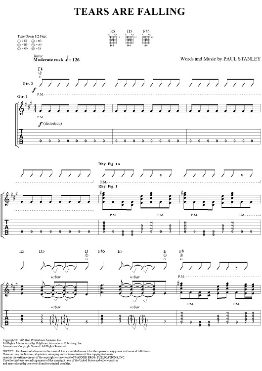 Digital Sheet Music for Tears Are Falling by Paul Stanley, KISS scored for Guitar Tab/Vocal; id:206972