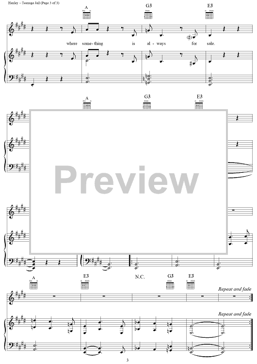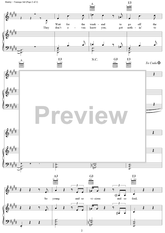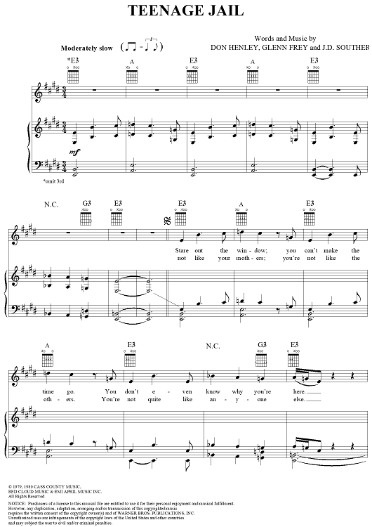 Digital Sheet Music for Teenage Jail by Don Henley, J. D. Souther, Glenn Frey, Eagles scored for Piano/Vocal/Chords; id:113210