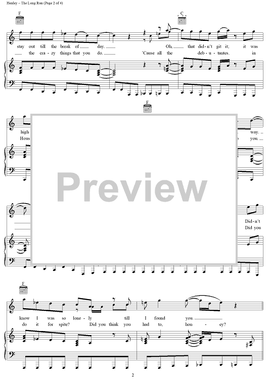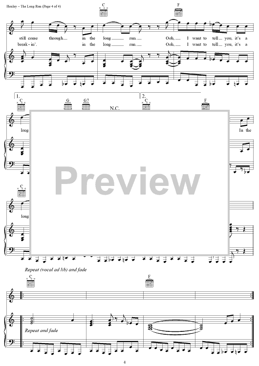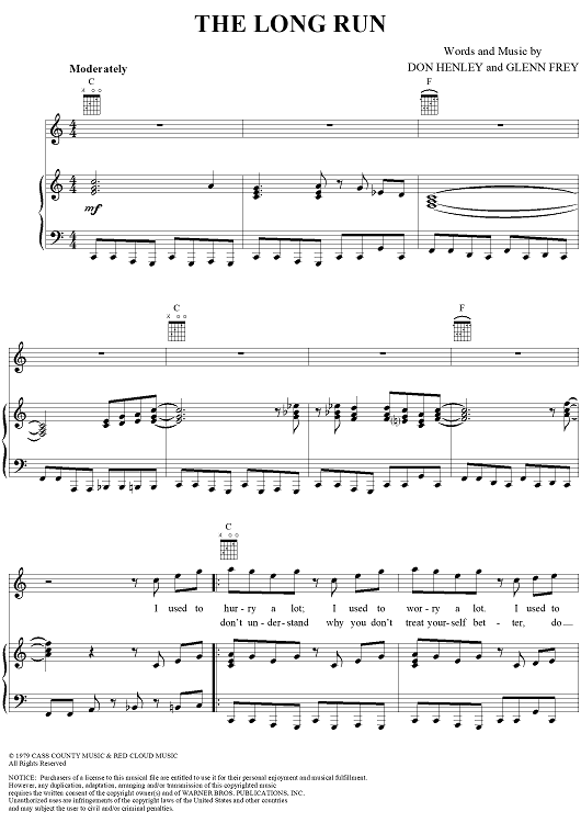 Digital Sheet Music for The Long Run by Don Henley, Glenn Frey, Eagles scored for Piano/Vocal/Chords; id:113084