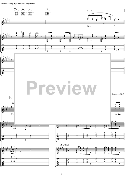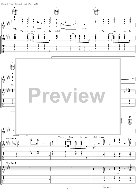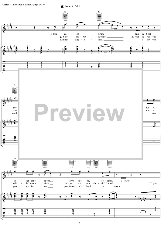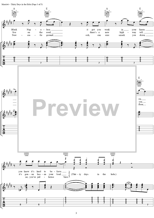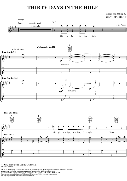 Digital Sheet Music for Thirty Days in the Hole by Steve Marriott, Humble Pie scored for Guitar Tab/Vocal; id:220762