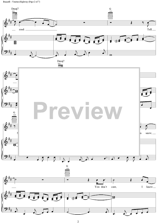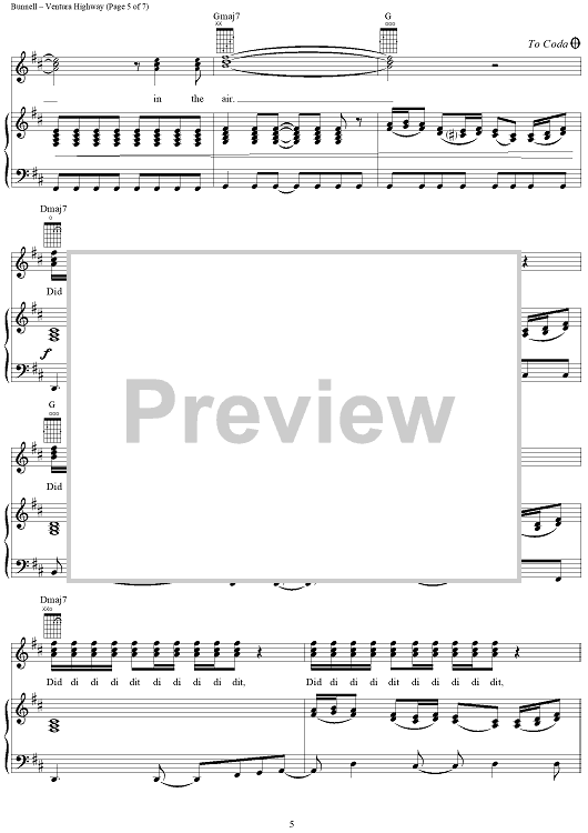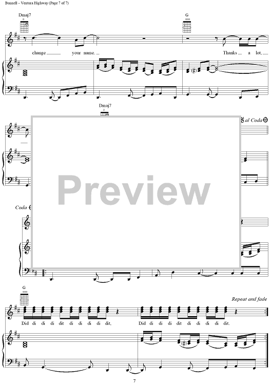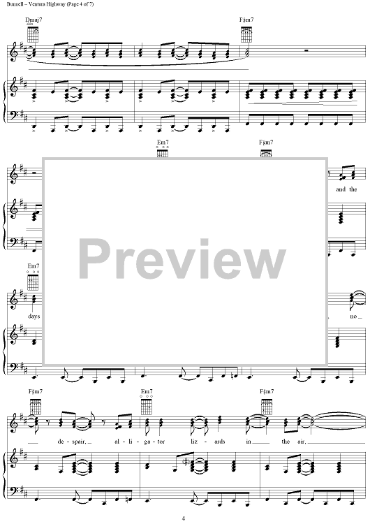Digital Sheet Music for Ventura Highway by America, Dewey Bunnell scored for Piano/Vocal/Chords; id:117813