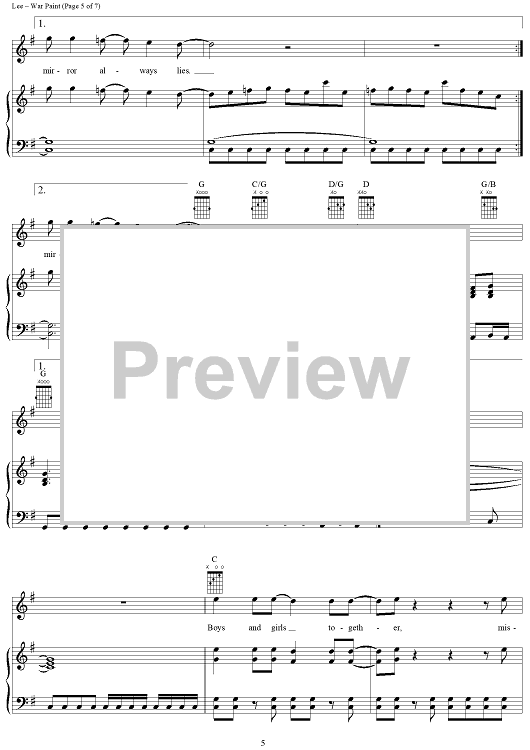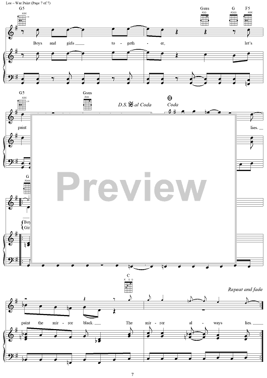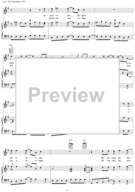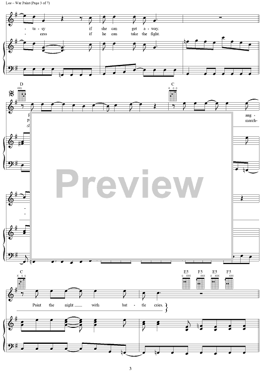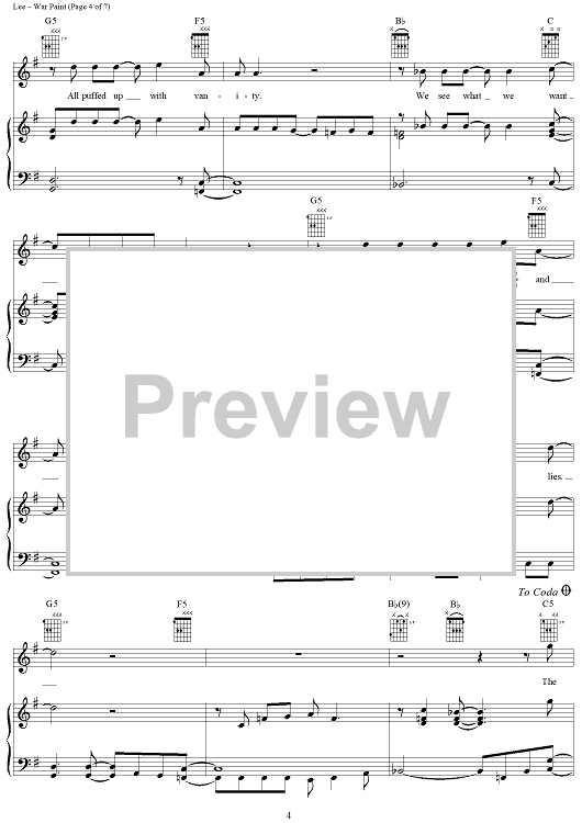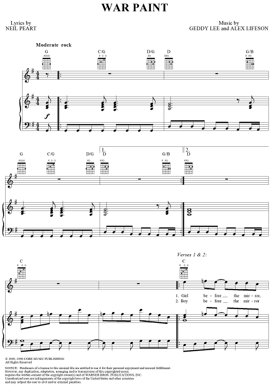 Digital Sheet Music for War Paint by Rush, Geddy Lee, Alex Lifeson, Neil Peart scored for Piano/Vocal/Chords; id:240722