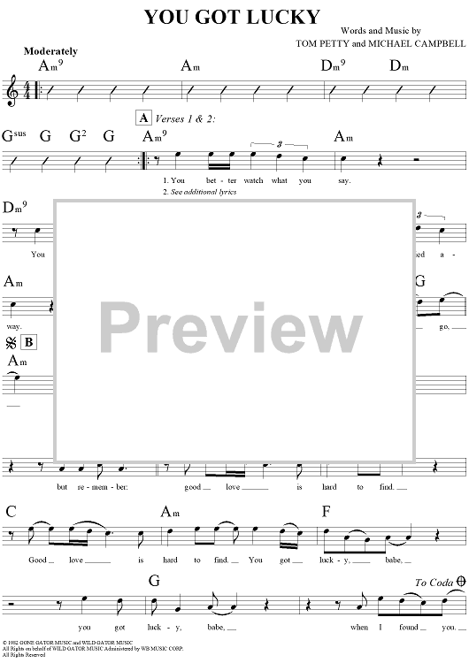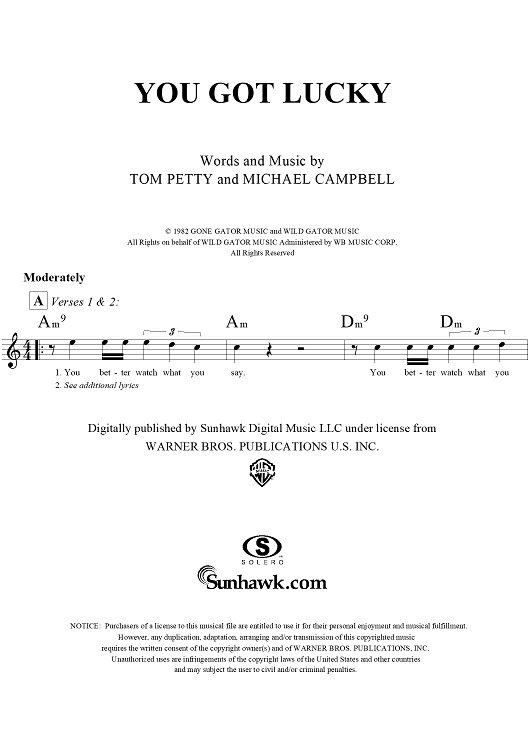 Digital Sheet Music for You Got Lucky by Tom Petty, Michael Campbell scored for Lead Sheet; id:293828