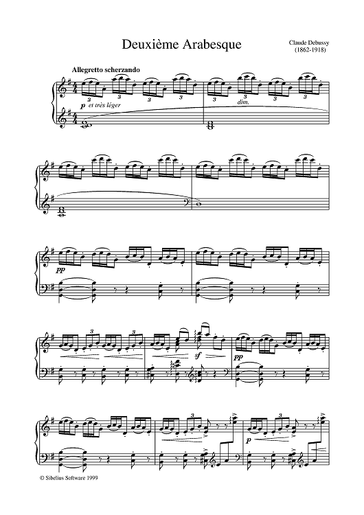 Digital Sheet Music for Deuxieme Arabesque by Claude Debussy scored for Piano; id:385886