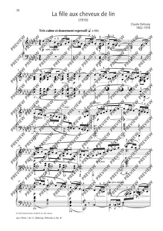 Digital Sheet Music for La Fille aux cheveux de lin by Claude Debussy scored for Piano; id:486607