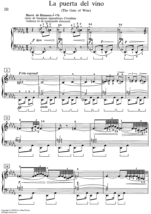 "La Puerta del Vino (The Gate of Wine)" Sheet Music by Claude Debussy