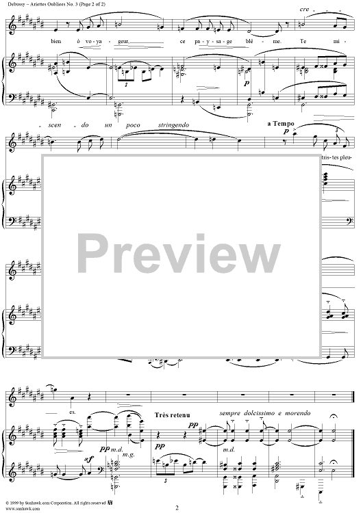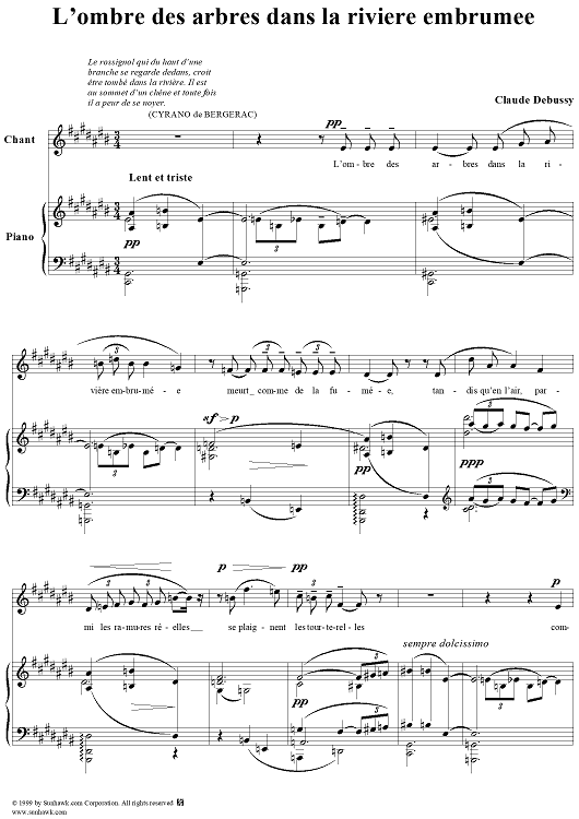 Digital Sheet Music for L'ombre des arbres dans la rivière embrumée - No. 3 from "Ariettes oubliées" - L60 by Claude Debussy scored for Voice/Piano; id:272100