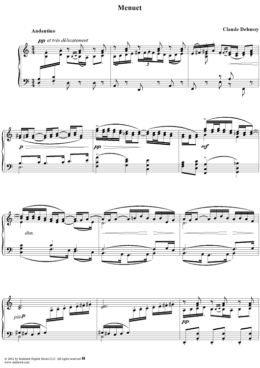 "Suite Bergamasque: Menuet" Sheet Music by Claude Debussy