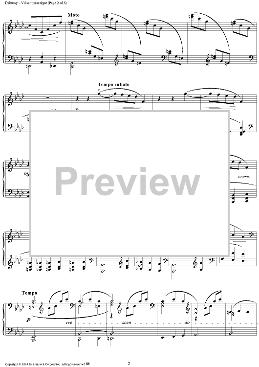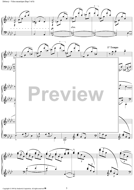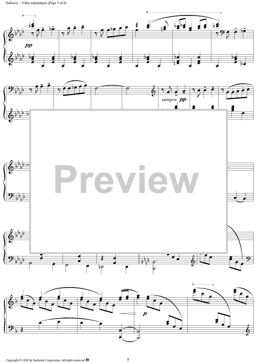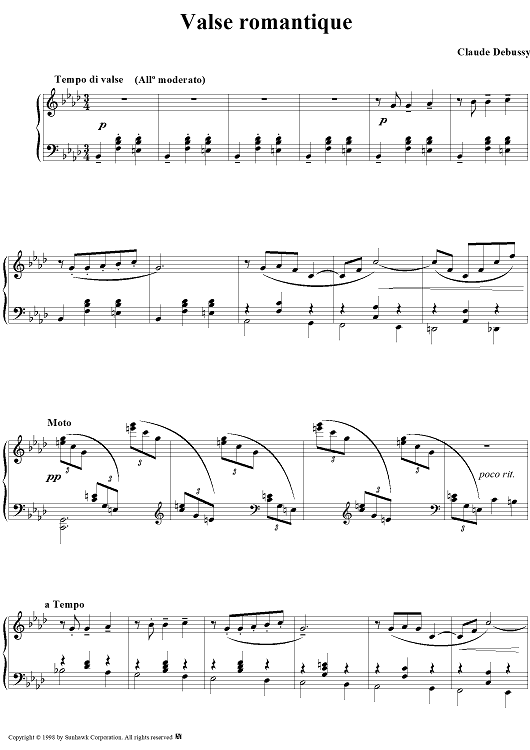 Digital Sheet Music for Valse romantique by Claude Debussy scored for Piano Solo; id:95568