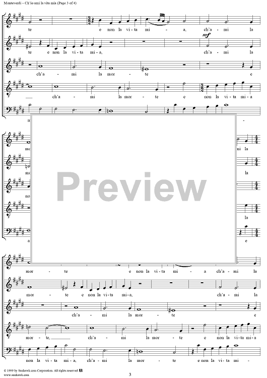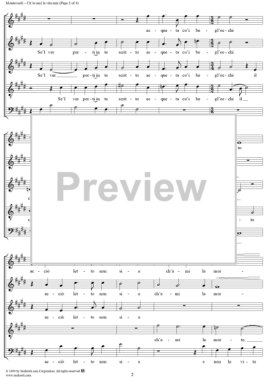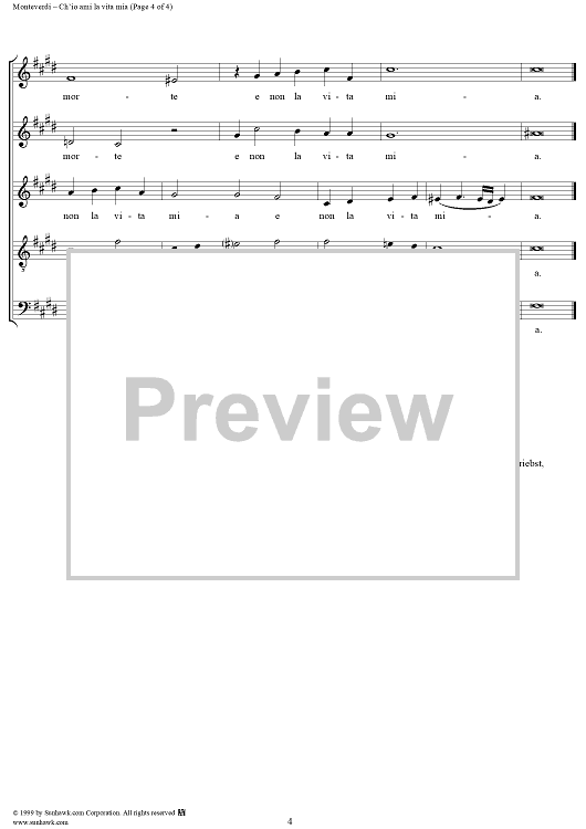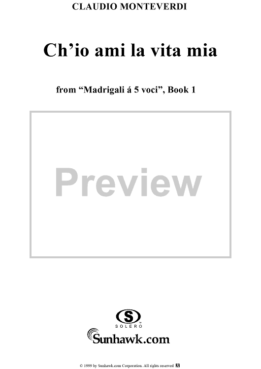 Digital Sheet Music for Ch'io ami la vita mia - From "Madrigali à 5 voci" Book 1 - SV23 by Claudio Monteverdi scored for Four-part Mixed Chorus; id:252982