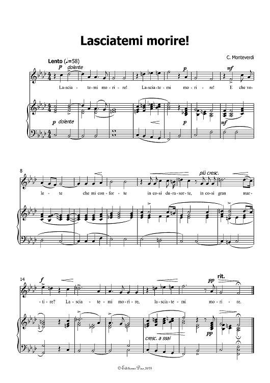 "Lasciatemi morire!" SV 107 in f minor, for Voice and Piano