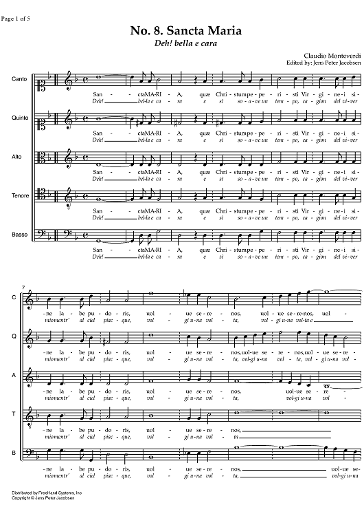 "Sancta Maria - Deh! bella e cara" Sheet Music by Claudio Monteverdi