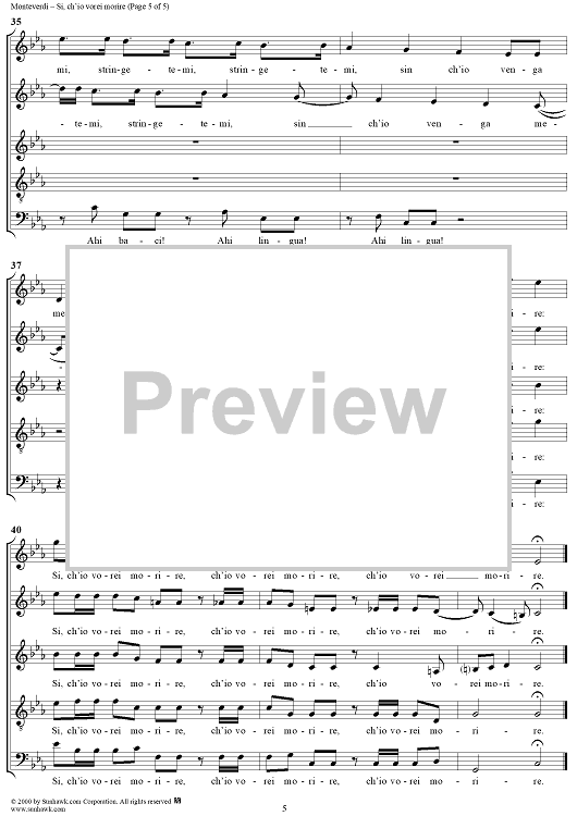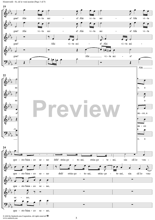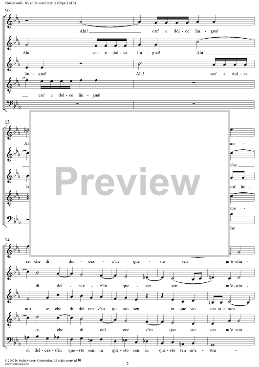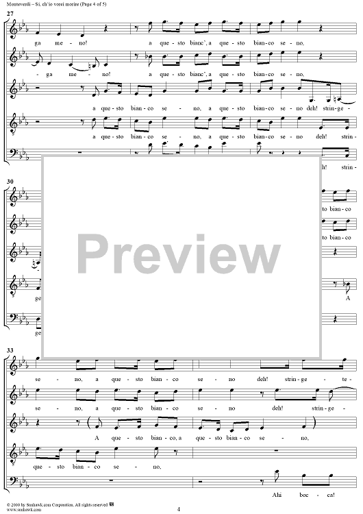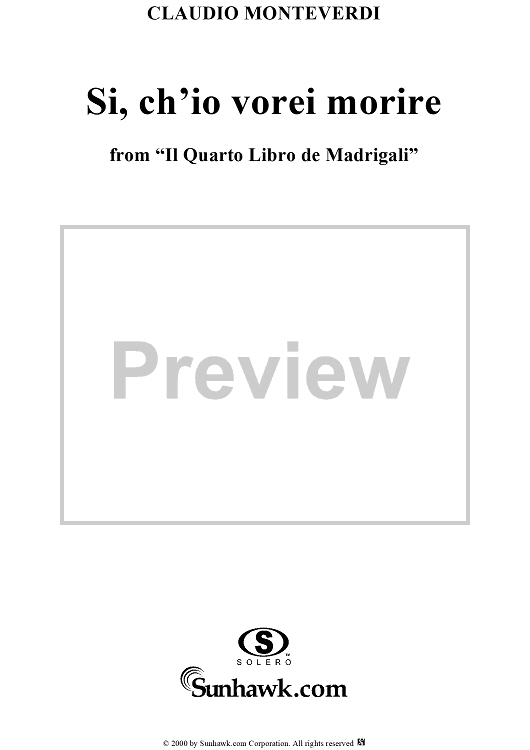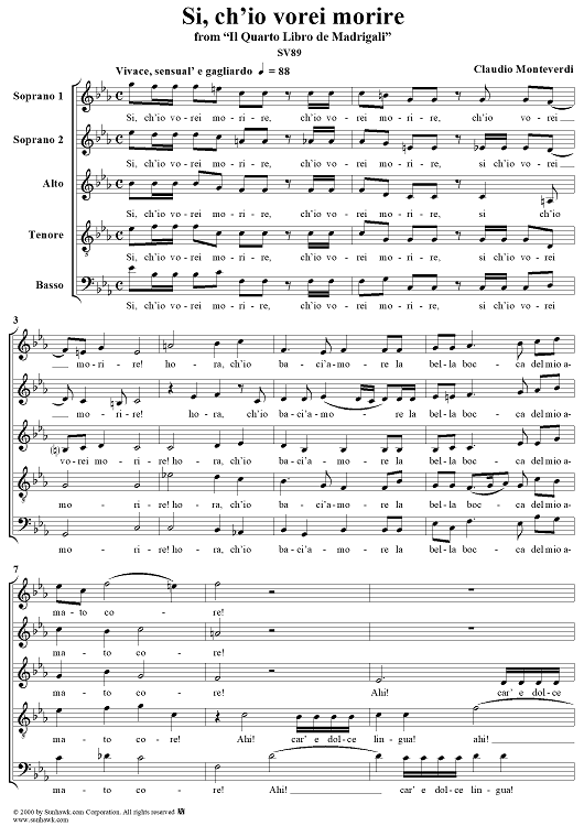 Digital Sheet Music for Si ch'io vorrei morire - From "Il Quarto Libro de Madrigali" - SV89 by Claudio Monteverdi scored for Four-part Mixed Chorus; id:253126