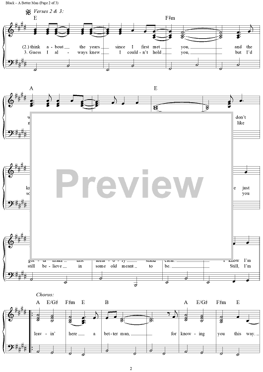 Digital Sheet Music for A Better Man by Clint Black, Hayden Nicholas scored for Piano/Vocal/Chords; id:274747