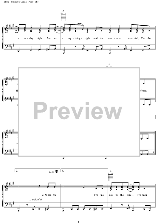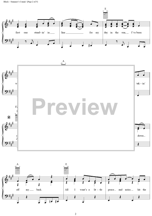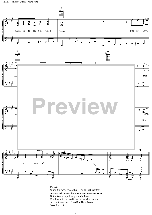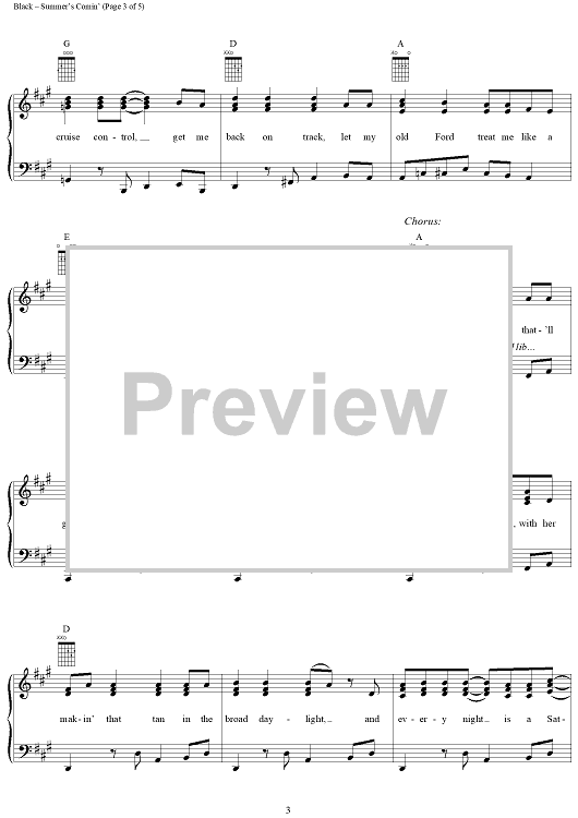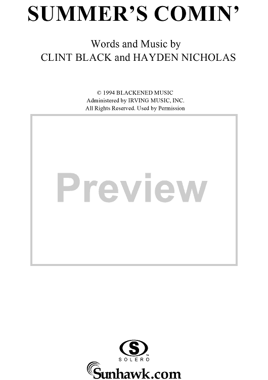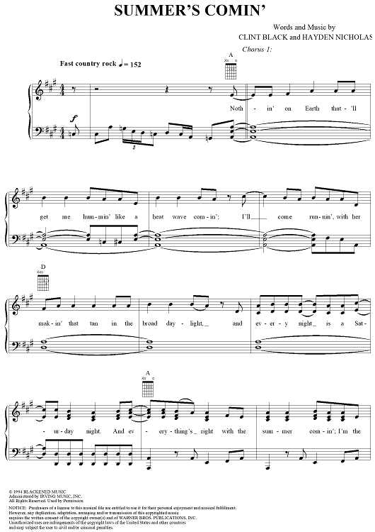 Digital Sheet Music for Summer's Comin' by Clint Black, Hayden Nicholas scored for Piano/Vocal/Chords; id:276081