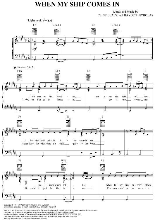Digital Sheet Music for When My Ship Comes In by Clint Black, Hayden Nicholas scored for Piano/Vocal/Chords; id:274899