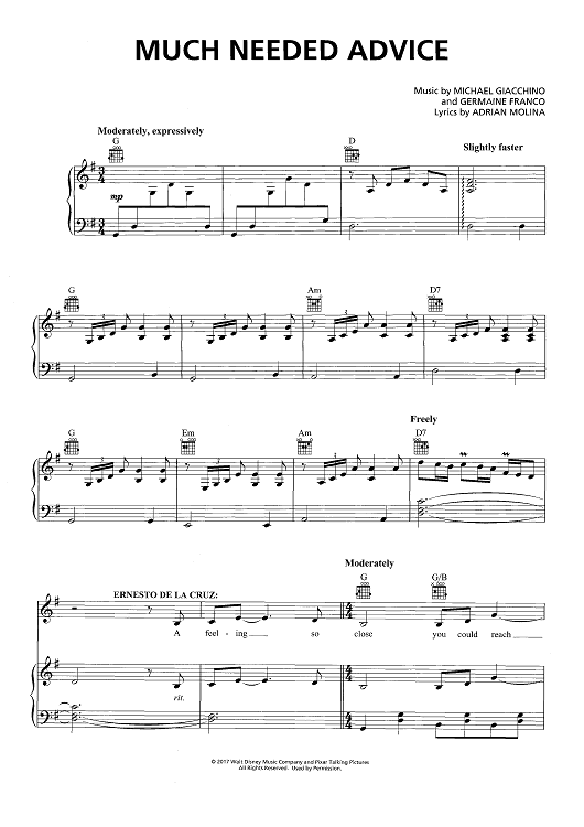 Digital Sheet Music for Much Needed Advice - from COCO by Michael Giacchino, Germaine Franco, Adrian Molina scored for Piano/Vocal/Chords; id:466183